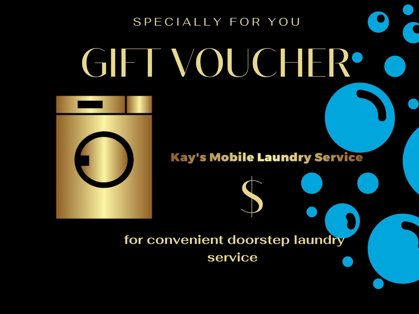 A laundry service is the perfect "I'm thinking of you" to anyone! Life moves fast and so does laundry! Give the gift of convenience with a Kay's Mobile Laundry Service gift card.